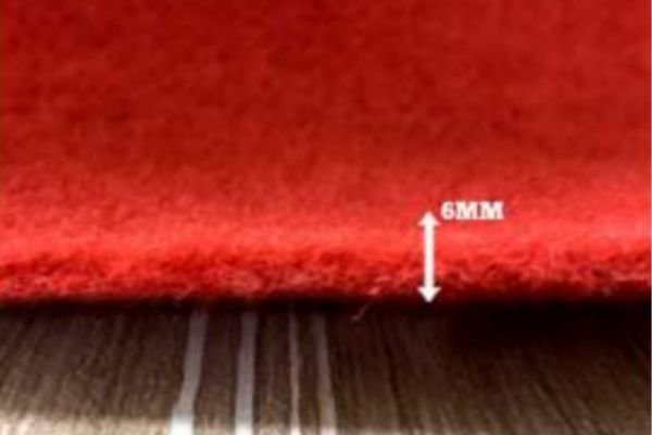 The carpet colour is vibrant, with a fine suede-like texture that resists shedding.